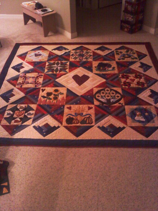 Started this one in 1996 without knowing what I was doing. Finished it New Years Eve, 2010. I call it my "Progressive Quilt" as I can look at it and see what I have learned thru classes and experience.