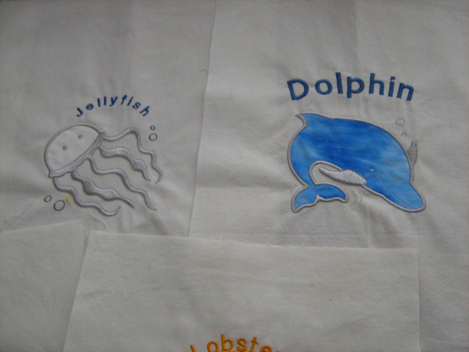 The first pic is my first attempt at In the Hoop,second is more In the Hoop and the ship was machine applique.