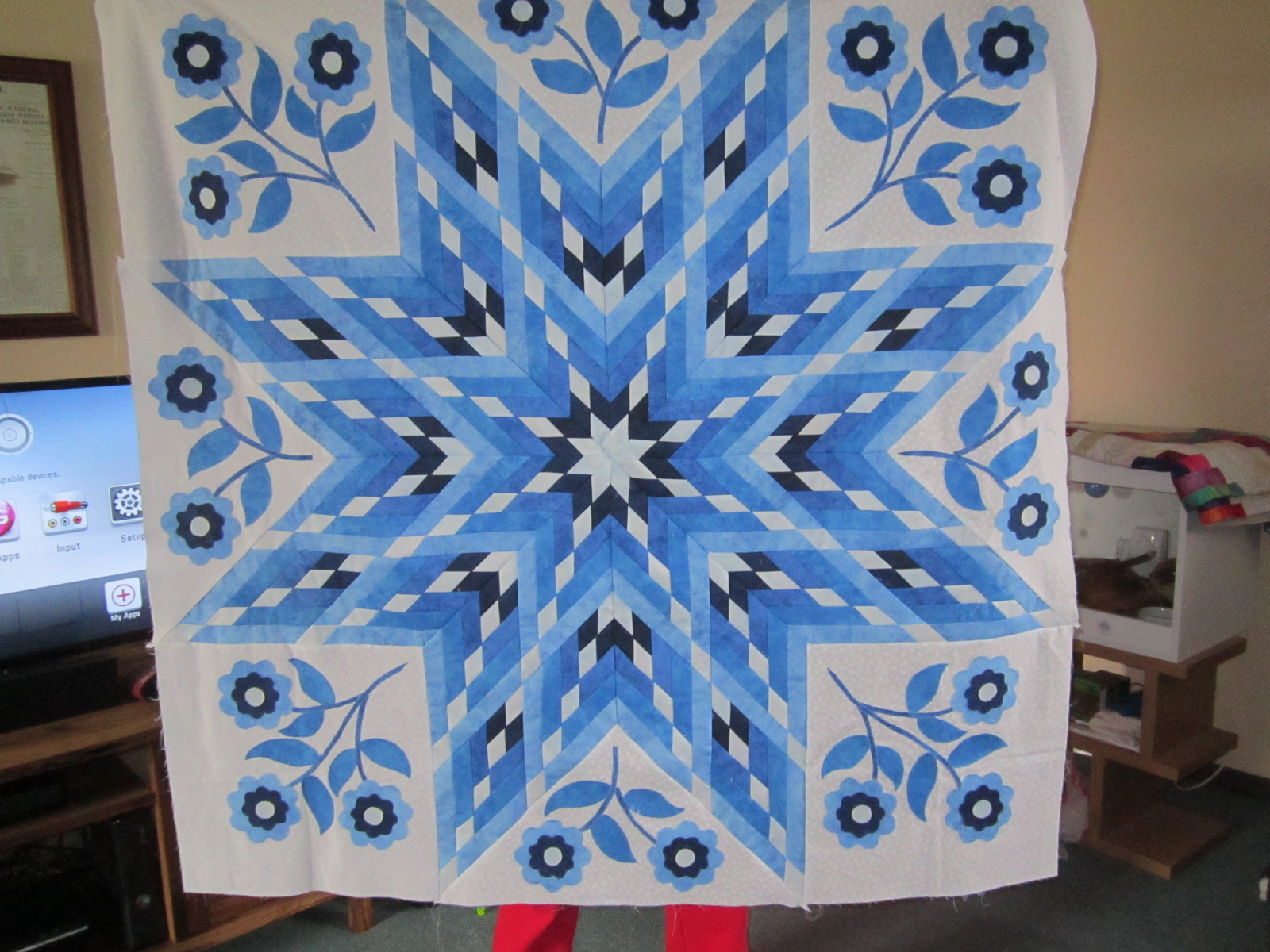 I thought you would like to see my latest quilt, it's not finished yet as I still have to add 2 borders, but I think its starting to come together, the pattern is called china blue by derrick lockwood