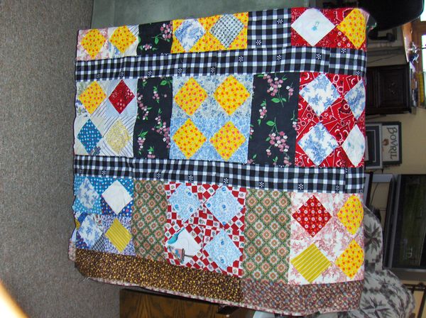 Found 5 unquilted tops my grandmother (1894-1978) pieced probably mid 60's. Post WWII, my dad sewed at Harwood (near Roanoke, Va) so you may recognize some of the pajama fabrics. Believe I will TIE and back with muslin. Have 5 grandchildren... can you imagine a quilt pieced by your Great Great Grandmother??