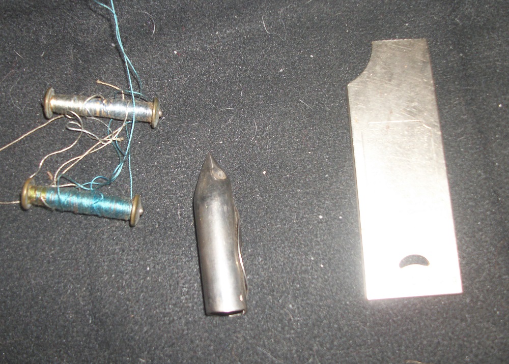 so I cleaned the table with Murphy's Wood Oil and then used Old English on the wood--it was in pretty good shape to start with. And then I cleaned all the feet, etc with silver cleaner and cleaned the boxes too---and using the picture that Jane sent in that link, I put everything back into the boxes--have one very complete one and one attachment box that is just partial. Next up, cleaning and oiling the machine. Question I have---how much thread goes on those little spindle bobbins? It would seem not much, but....